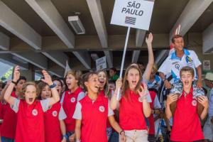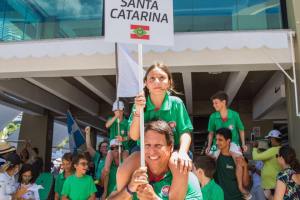 A Cerimônia de Abertura foi bastante alegre e com referências à cultura do estado anfitrião: uma autêntica baiana abriu o desfile, distribuindo fitas do Senhor do Bonfim e muitos sorrisos e uma banda de percussão animou o trajeto dos atletas, da Vila das Regatas até a Rosa dos Ventos. Confira as fotos de Peu Fernandes: