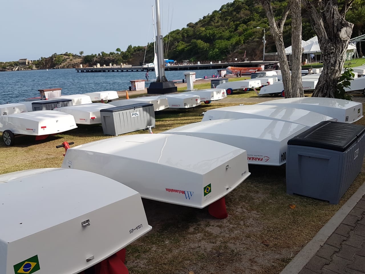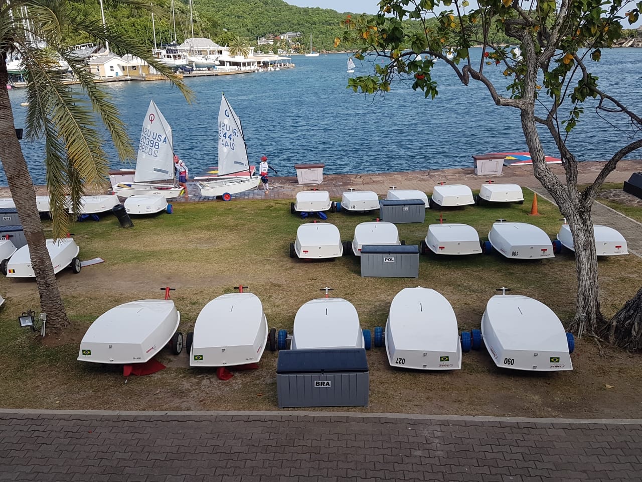 Nosso time Brasil já está na Antígua e já trabalhando nos seus barcos, seus grandes companheiros nos próximos 15 dias. Essa conexão do atleta com seu equipamento é fundamental para um bom desempenho, pois o barco é a extensão do corpo do velejador. Segundo Jonatas Gonçalves, nosso team leader, “Estamos sendo muito bem tratados. O hotel fica ao lado do Clube, 2 minutos no máximo da porta do quarto até encostar no barco. Conseguimos ver os barcos da janela do quarto.” Amanhã começam os treinos!