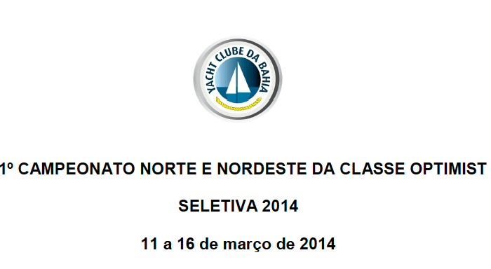 Segue link para o Aviso de Regatas do Campeonato Norte Nordeste 2014 e Seletiva 2014 que serão em Salvador entre os dias 11 e 16 de Março de 2014 https://optibra.com.br/wp-content/uploads/2014/01/ar_seletiva_opt-2014.pdf … Continue lendo Aviso de regata: Norte/Nordeste 2014 (Seletiva)