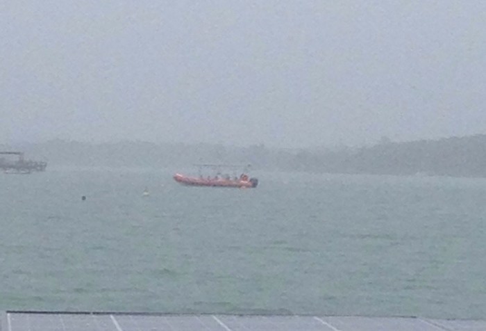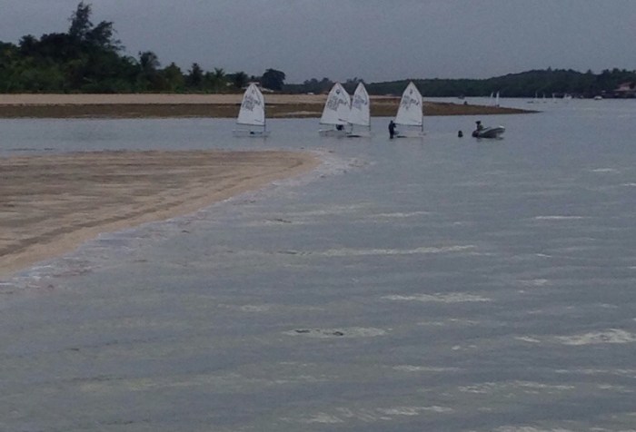 Depois do ventao e da chuva…. Nuvens carregadas, sem vento, não deu para terminar as regatas por equipes!!!! E ainda maré seca para atravessar o pontal.